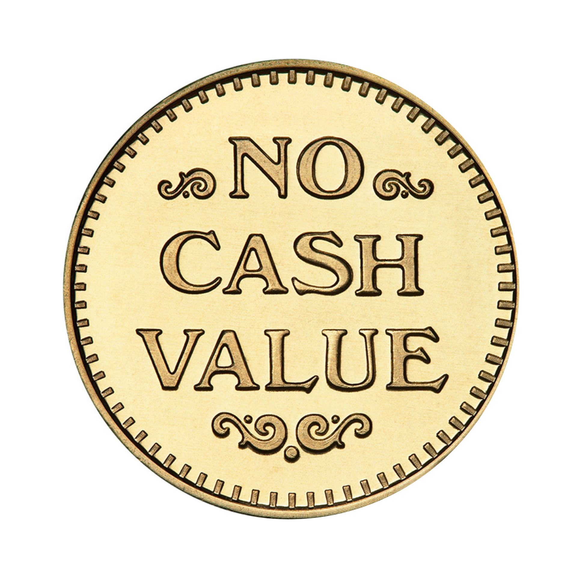 This 0.880" brass token features an elegant Eagle Stars No Cash Value design. With a thickness of 0.068", it's ideal for token-operated systems such as car washes, amusement centers, or parking services. The durable finish ensures long-term performance and a professional appearance.