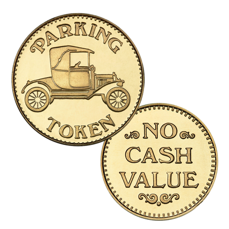 This 0.880" brass token features a "Parking No Cash Value" design, ideal for parking systems. With a thickness of 0.068", it is designed for long-term durability in token-operated applications. Smooth and reliable, this token offers both functionality and professionalism.