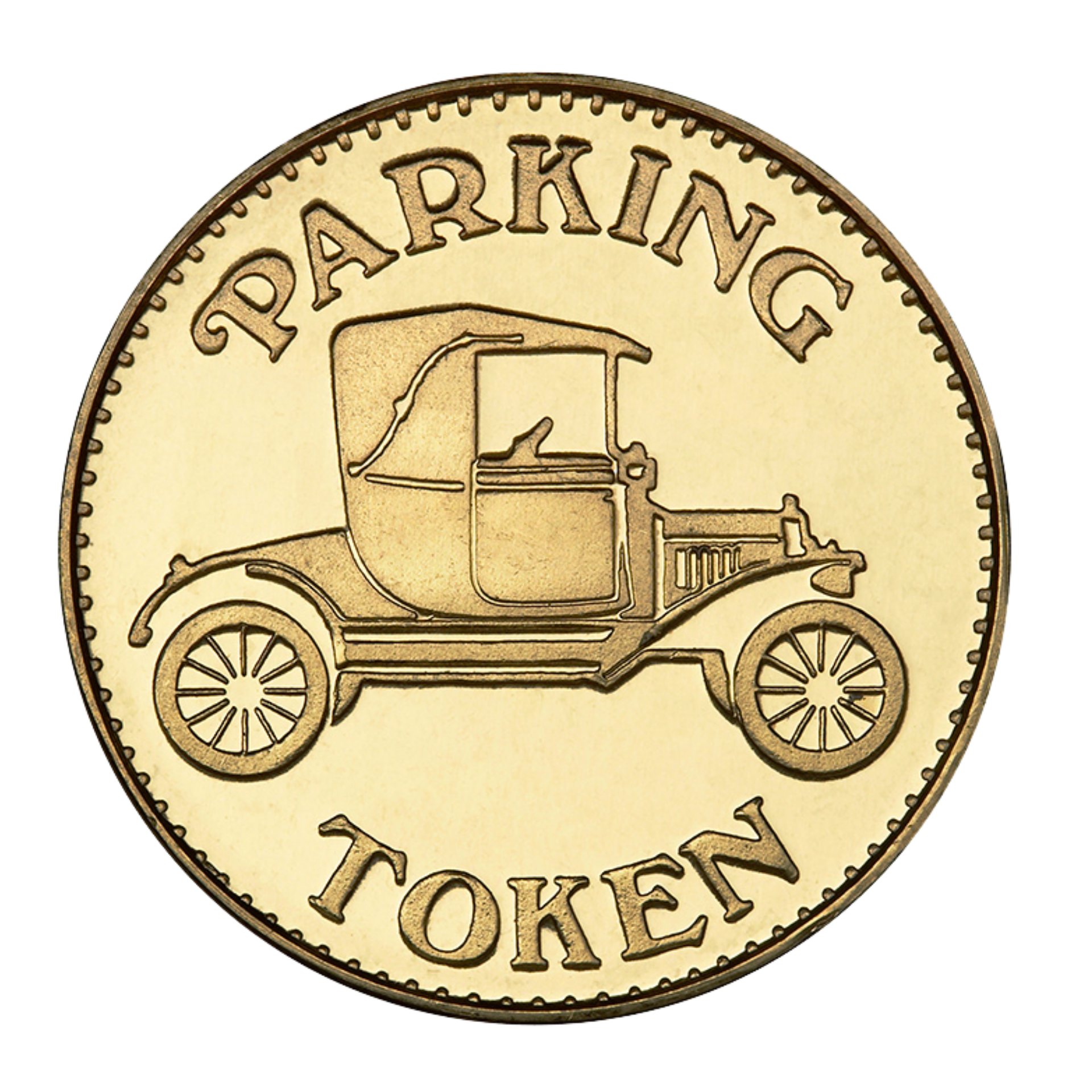 This 0.880" brass token features a clean, plain finish with an identical "Parking Token" design on each side. Built for durability, it is ideal for parking systems and other token-operated applications. With a thickness of 0.068", it ensures smooth operation and long-lasting performance.