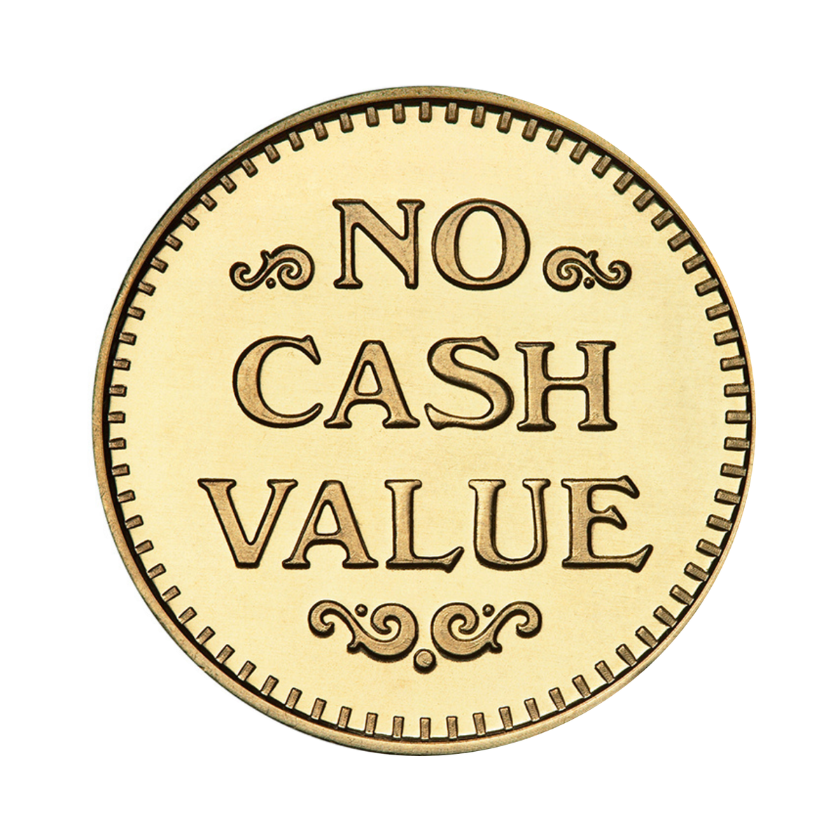 This 1.000" brass token features an Eagle Stars design on one side and "No Cash Value" on the other. With a plain finish and a thickness of 0.061", it is built for durability and reliable performance in token-operated systems. Crafted from high-quality brass, this token ensures long-lasting use, ideal for businesses seeking dependable token solutions.
