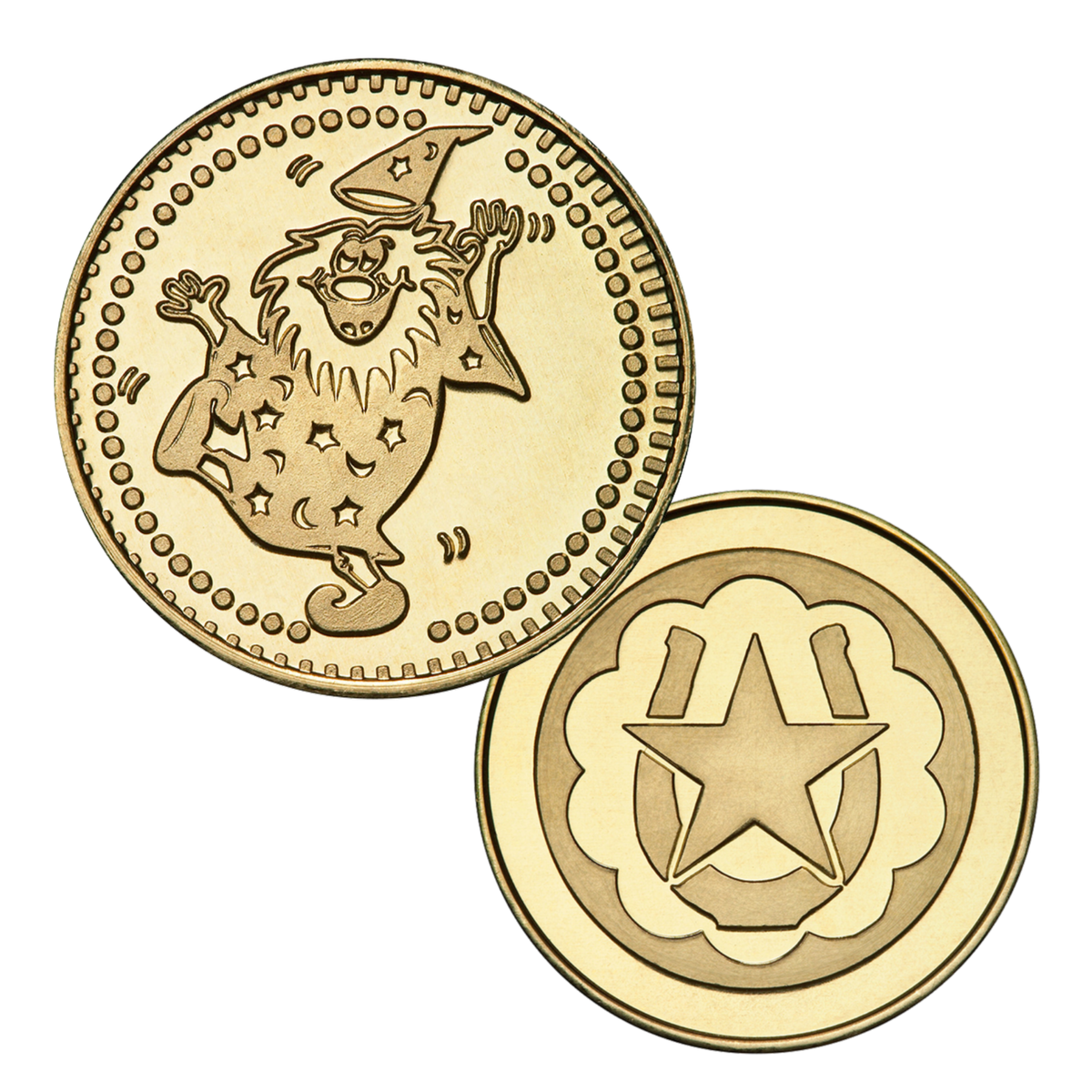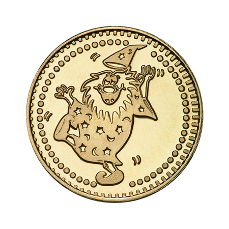 This 0.900" brass token features a Wizard design on one side and a Horseshoe Star design on the other. With a plain finish and a thickness of 0.068", it offers durability and reliable functionality for various token-operated systems. Ideal for amusements and promotional use, this token's robust brass construction ensures long-lasting performance.